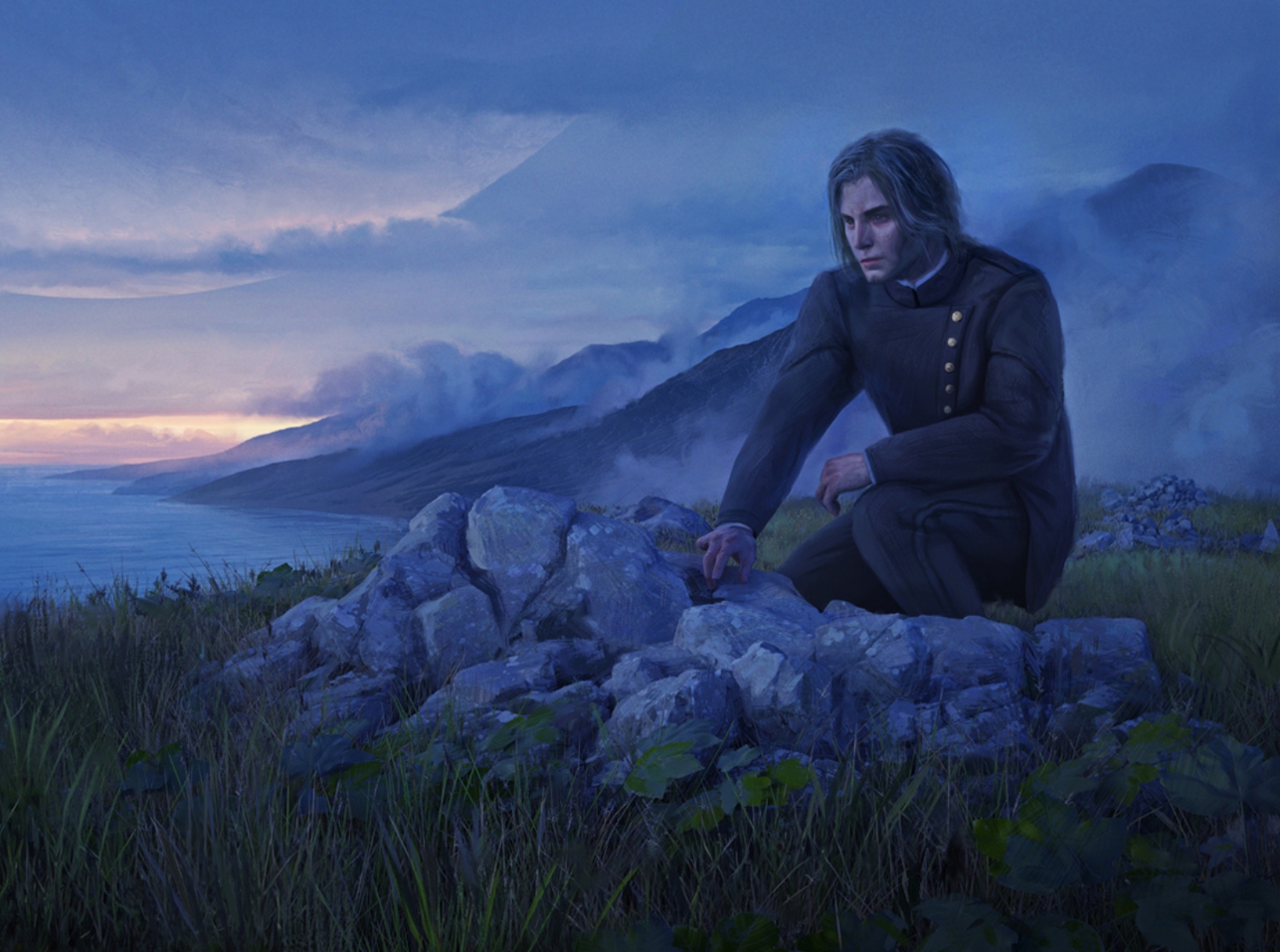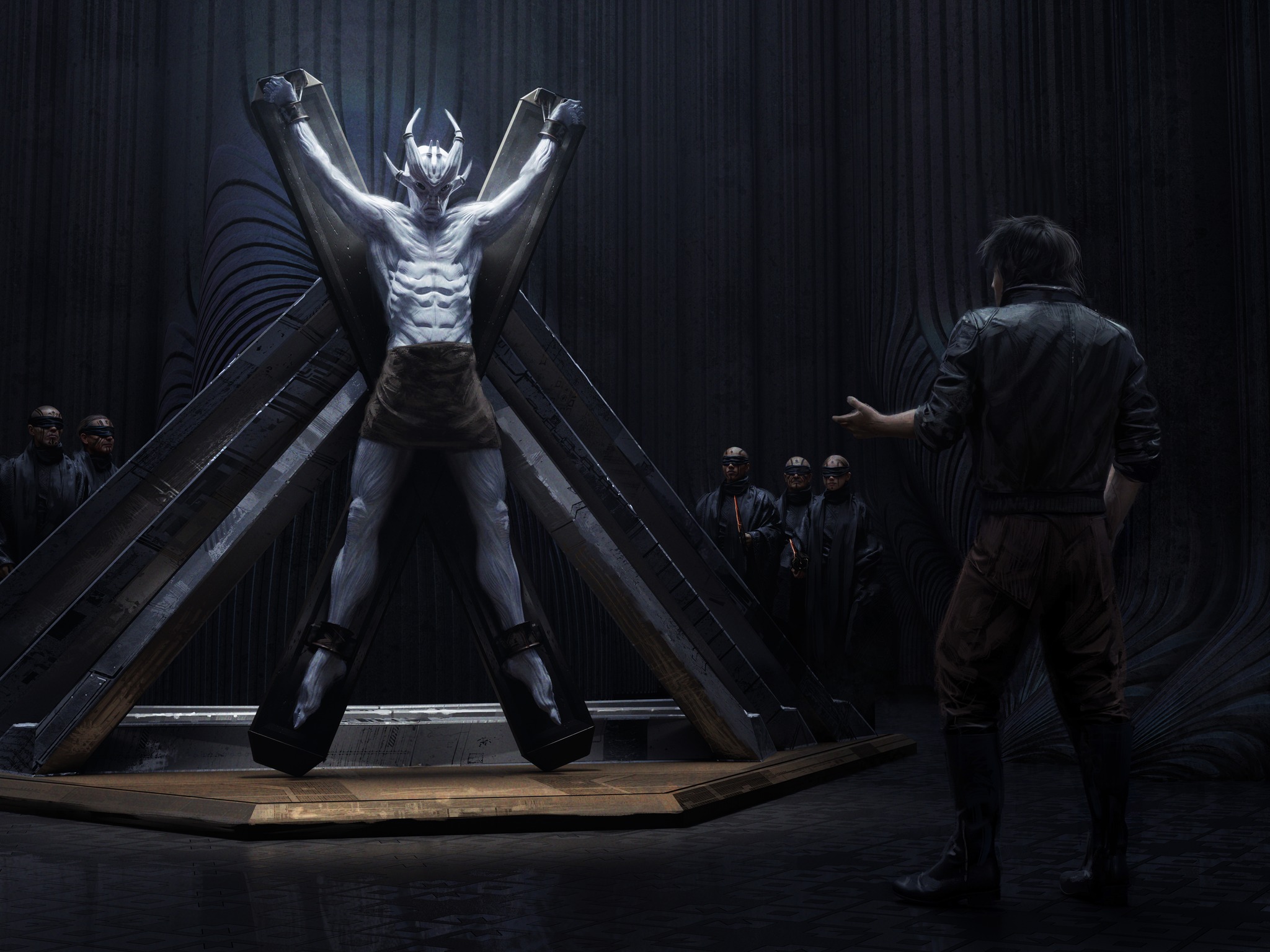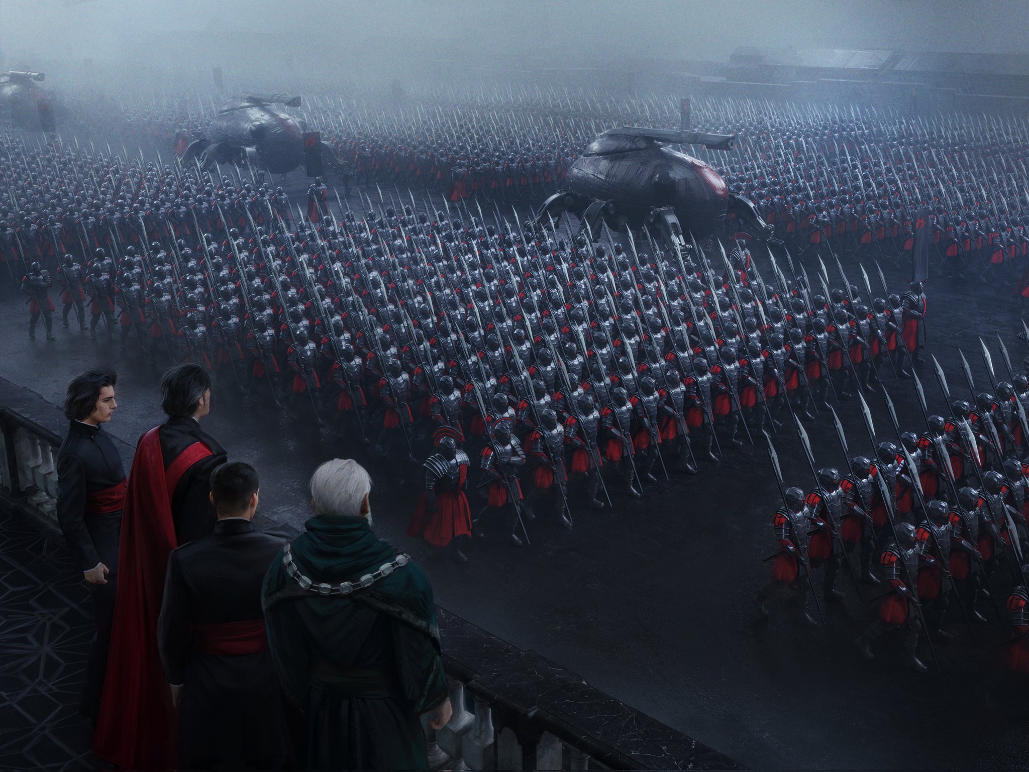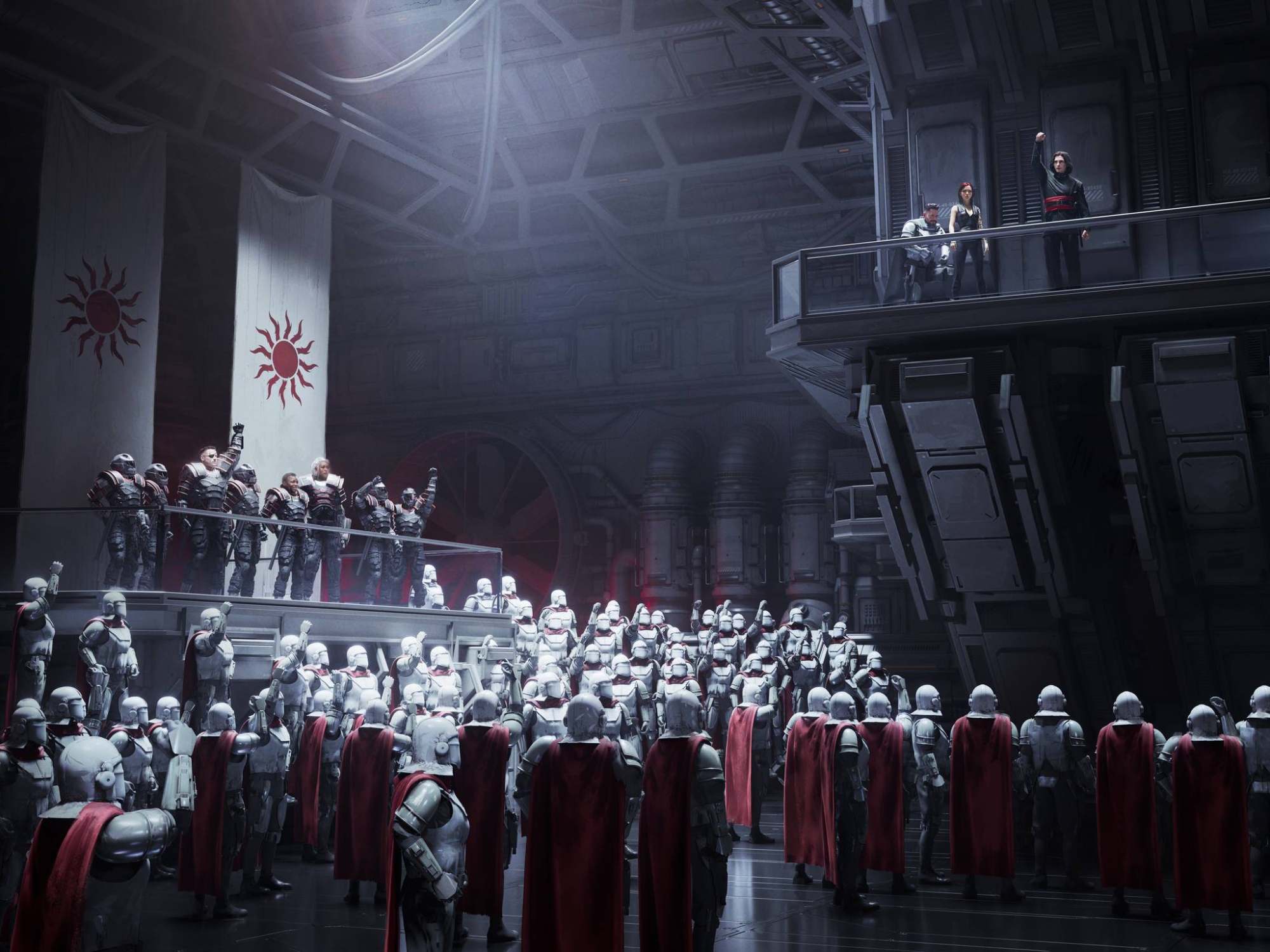 Hadrian cuts an imposing figure with a tall, lean frame, violet eyes, and long black hair. As a Palatine, he is genetically modified to be physically superior—immune to most diseases and resistant to aging. His typical attire consists of black and red suits which pay homage to his noble lineage, but his appearance evolves over time to reflect his many roles and journey's. Hadrian carries himself with a quiet confidence and an almost palpable magnetism.
